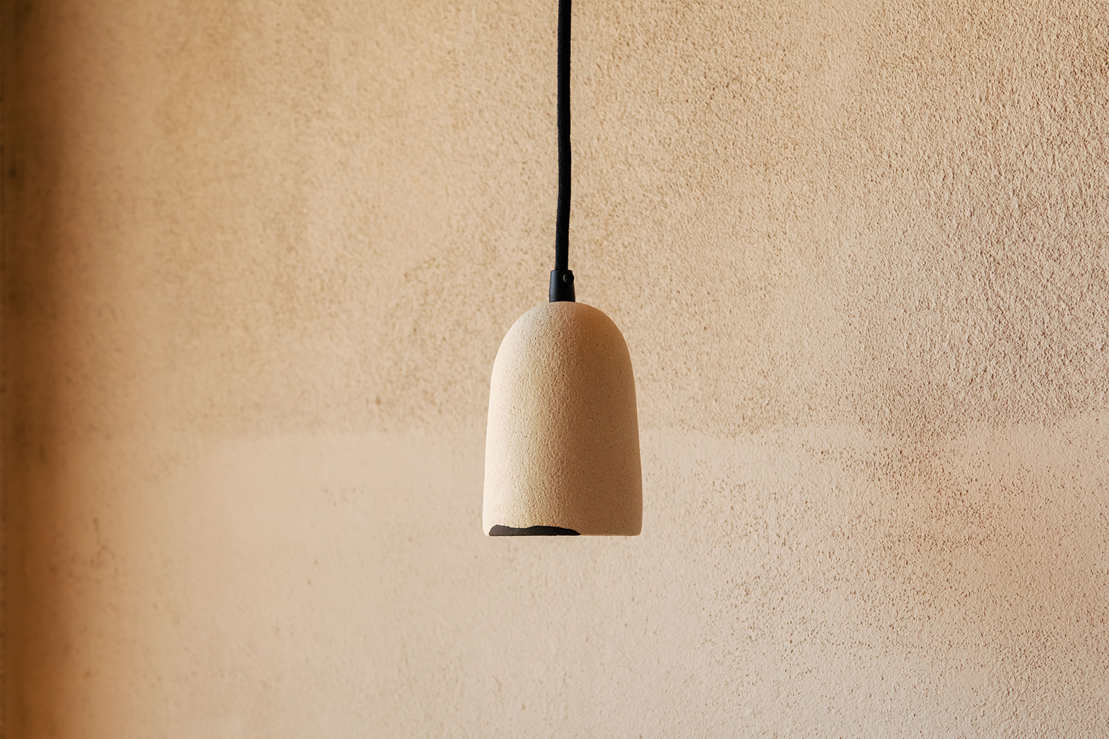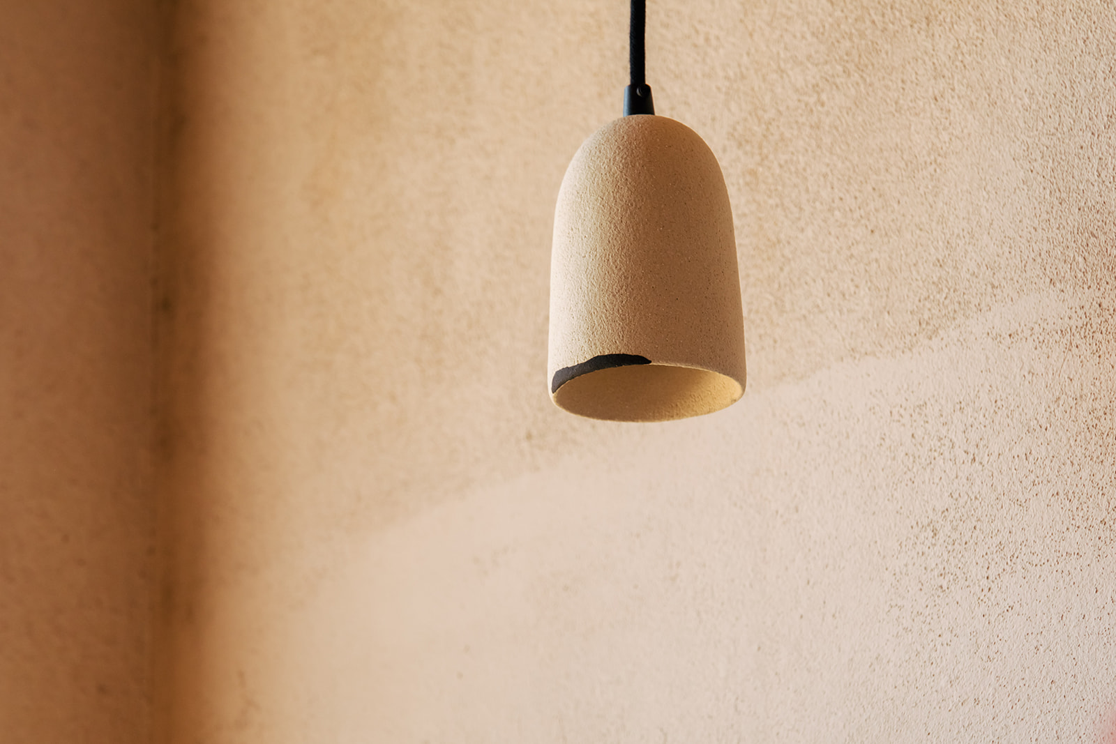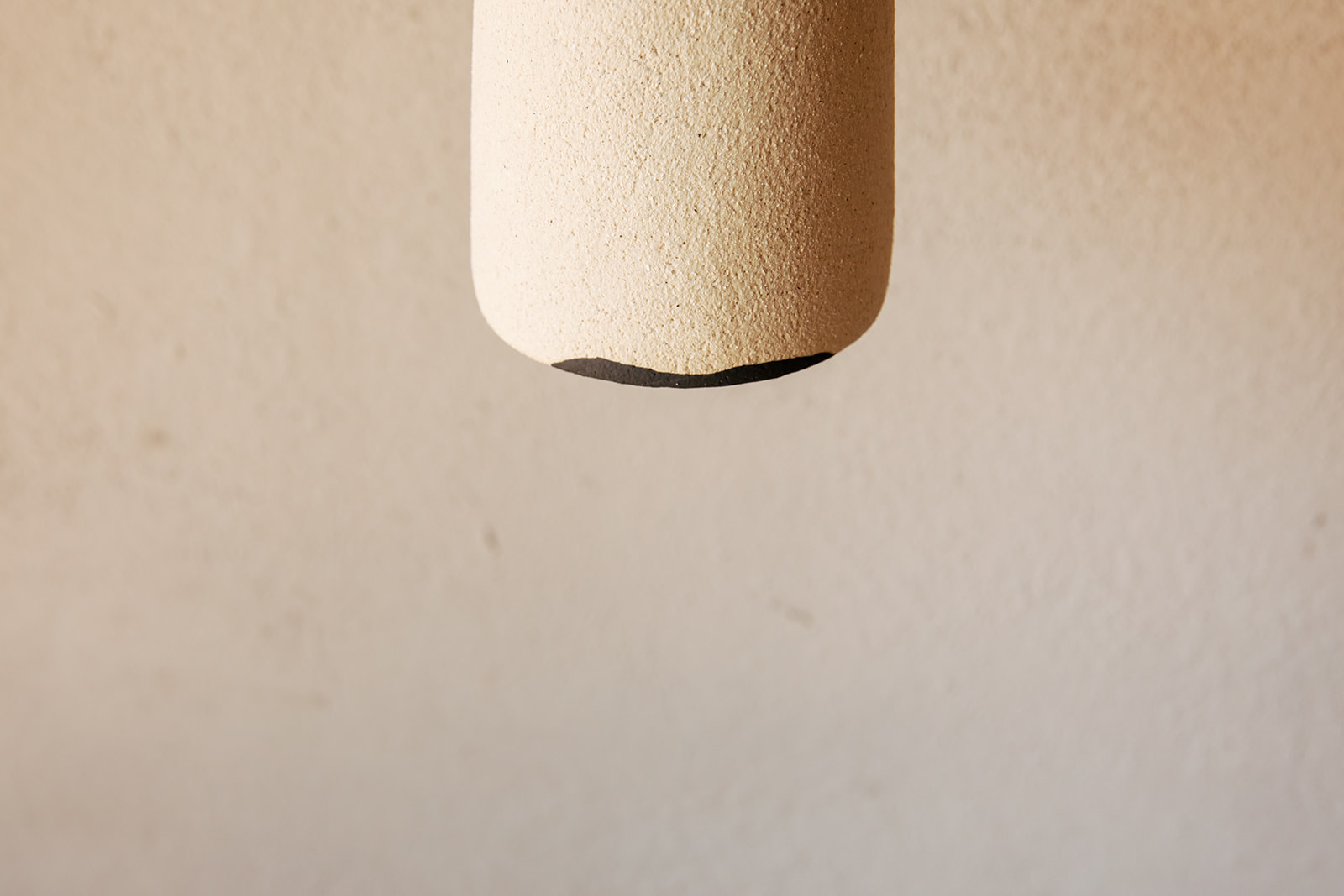 Ceramic pendant light made of a creamy stoneware clay and a little detail in black in a contemporary minimalist design.
