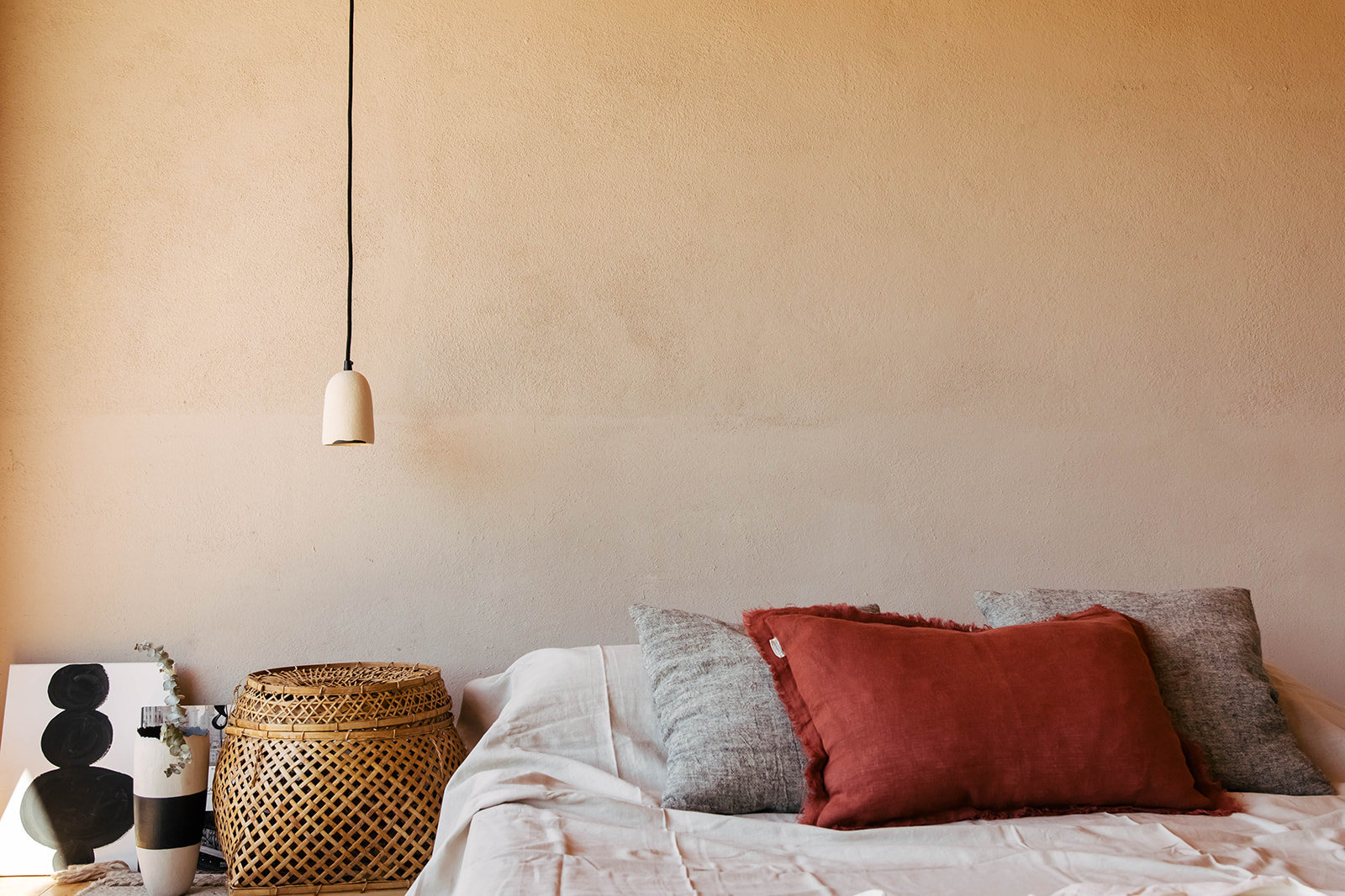 This ceramic pendant light is handmade with white/beige stoneware clay and has a hand painted detail in black clay. It is fired up to 1250o in an electric oven.